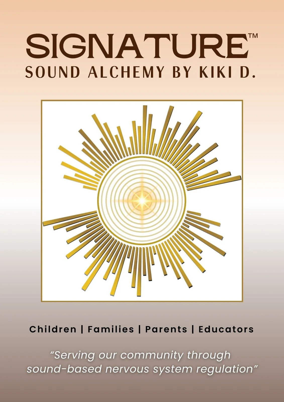 Signature Sound Alchemy by KiKi D. is home to sound-based nervous system regulation methods designed to support calm, connection, and emotional wellbeing for children, families, educators, and adults. Founded by KiKi D., Signature Sound Alchemy brings together sound, intentional listening, movement, and creative expression to help nervous systems feel safe and supported in everyday life. Rather than focusing on fixing or healing, this work offers structured, gentle experiences that empower individuals to reconnect with their own inner capacity for regulation, balance, and presence. KiKi is the creator of the NeuroTune™ Method for children and families, and the NeuroResonance™ Method for adults — frameworks experienced through SoundQuest™ Programs, SoundQuest™ Foundation Training, and selected adult workshops and retreats. Rooted in kindness, compassion, hope, faith, and love, Signature Sound Alchemy supports calmer nervous systems, stronger relationships, and more connected communities.